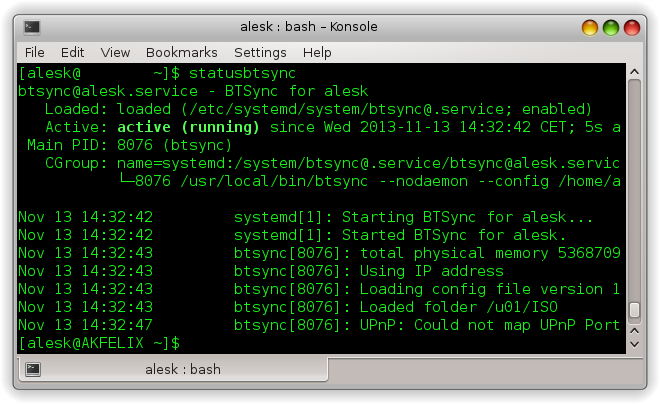 While setting up BitTorrent Sync (BTSync) on my Fedora 19 workstation at work I thought it’s about time for me to find a recipe on how to setup BTsync as systemd service. So far I start up BTsync manually via simple alias in bashrc, something like this: