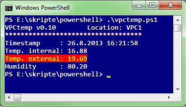 In the Part 1. of the article I showed command line tool written with Google Go that reads current values from ServersCheck temperature and humidity sensor. In part 2 of the article I’ll show you how I did the same with PowerShell 3.0 script. In a way this script is more sophisticated than the golang variant. First because of the way how password for ServersCheck is handled, instead of security by obscurity I’m asking user once for a password, then storing password encrypted with a combination of his/her computer private key + user session key in a local file vpctemp-pwd.txt. Not bullet proof but nevertheless a big improvement from golang version of the script.