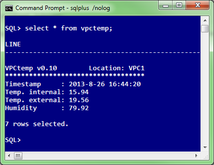 And that’s it. For a DBA team getting the current temperature and humidity in a data center becomes as easy as: